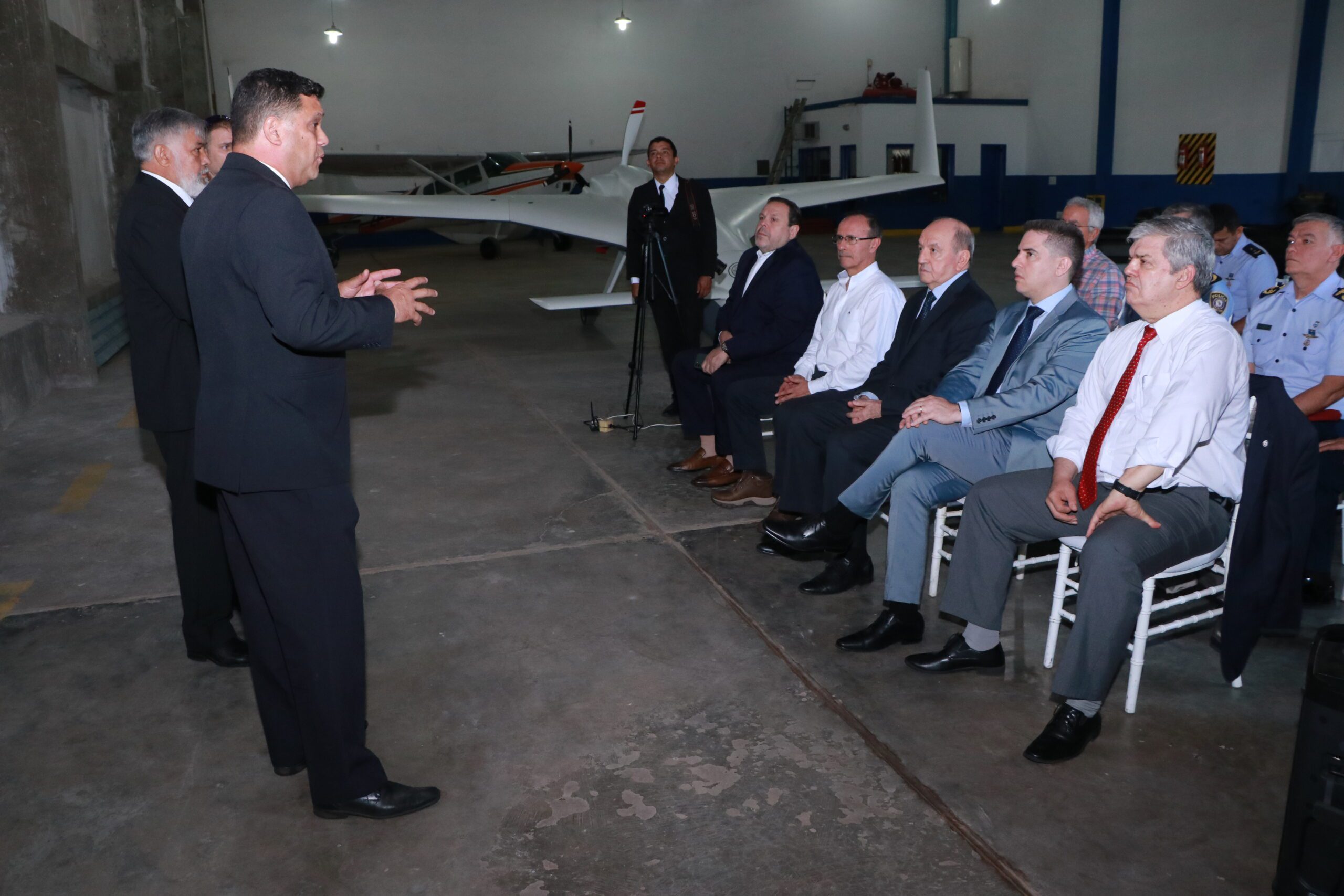 We deeply appreciate the distinguished visit of the Minister of the Interior, Enrique Riera Escudero, accompanied by his security advisor, Mr. Fidel Zavala, the Minister of Defense, Gral Ej (R) Oscar Luís González Cañete, the Permanent Secretary of CODENA, Contraalmirante (R) Cíbar Benítez Cáceres, Minister Mitic, Gustavo Villate, President of DINAC, Nelson Mendoza, Commander of the I BA, Brig. Gen. Aer Carlos Augusto Gómez Reyes, Brig. Gen. Aer Nicolás Ángel Narváez Retamozo, Commander of the National Police, Gen. Dir. Carlos Humberto Benítez, and the Chief Aeronautical Prefect, Col. DCEM Norberto Ranulfo Ojeda Ruiz, along with their respective delegations.